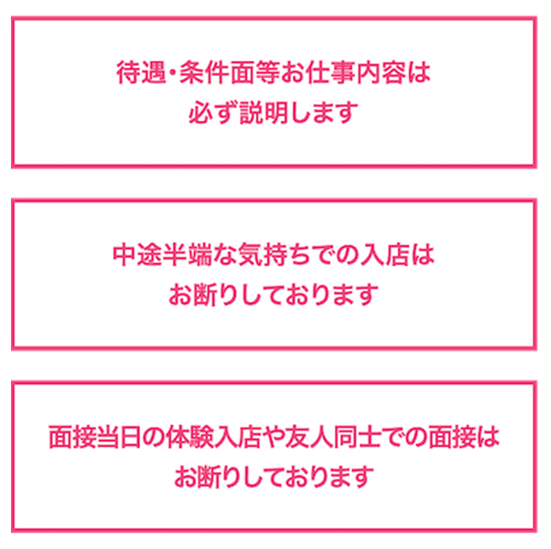 当店では女性同士の交流を持たない様、務めております。 個人情報の流出を防ぐ為、友人同士の面接も一切認めていません。